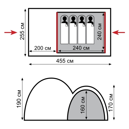 - Материал внутренней палатки: 100% дышащий полиэстер