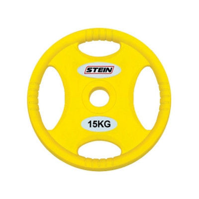 Stein Rubber Color Plate 15 KG Профессиональный диск от Stein , цветной резиновый Эргономичный дизайн с 4-мя отверстиями для рук; Внутренний диаметр диска - 51 мм; Стальные внутренние втулки для лёгкого одевания-снятия; Хорошая стойкость к торцевым ударам.
