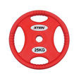 Stein Rubber Color Plate 25 KG Профессиональный диск от Stein , цветной резиновый Эргономичный дизайн с 4-мя отверстиями для рук; Внутренний диаметр диска - 51 мм; Стальные внутренние втулки для лёгкого одевания-снятия; Хорошая стойкость к торцевым ударам.