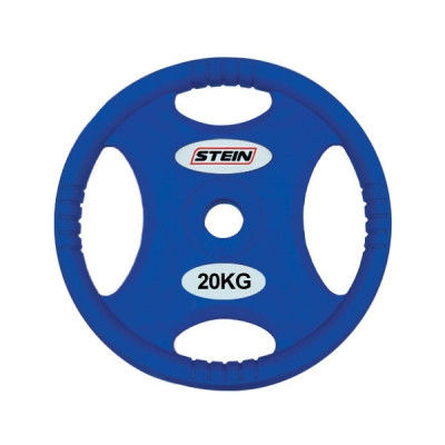 Stein TPU Color Plate 20 KG Профессиональный диск от Stein, цветной полиуретановый.  Эргономичный дизайн с 4-мя отверстиями для рук; Антибактериальные свойства покрытия; Высокопрочное TPU (полиуретановое) покрытие.