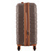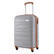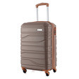 Корпус имеет рифленое покрытие, скрывающее мелкие царапины, а кодовый замок защищает вещи во время переездов. Чемодан оснащен четырьмя полноповоротными колесами на 360°, обеспечивающими маневренность и устойчивость, а также телескопической стальной ручкой, которая фиксируется в трех положениях. Внутреннее пространство разделено текстильной перегородкой с карманом на молнии для мелких вещей, есть эластичные компрессионные ремни для фиксации одежды. Верхняя ручка имеет мягкую гелевую подкладку, что придает комфорт при переноске.