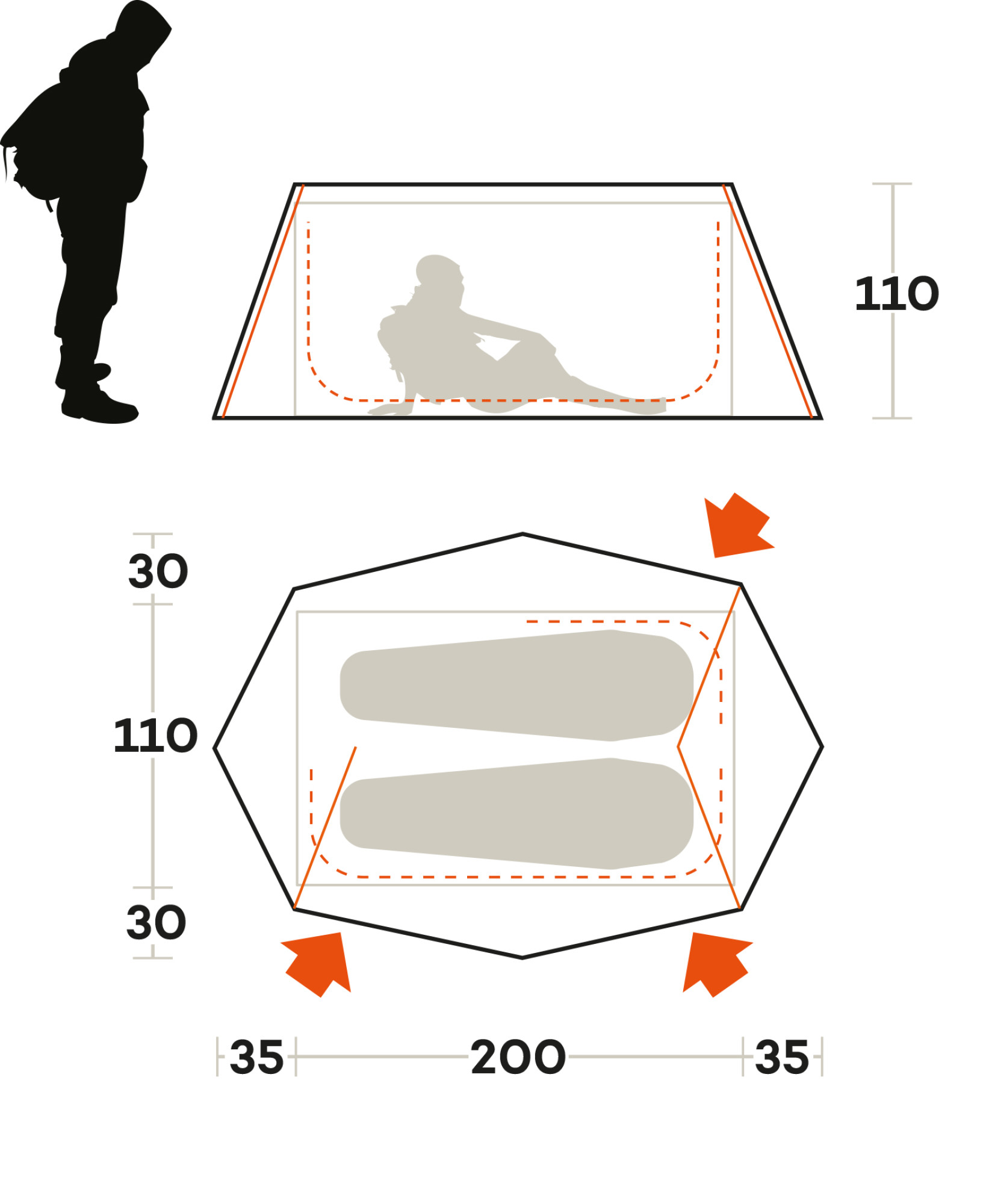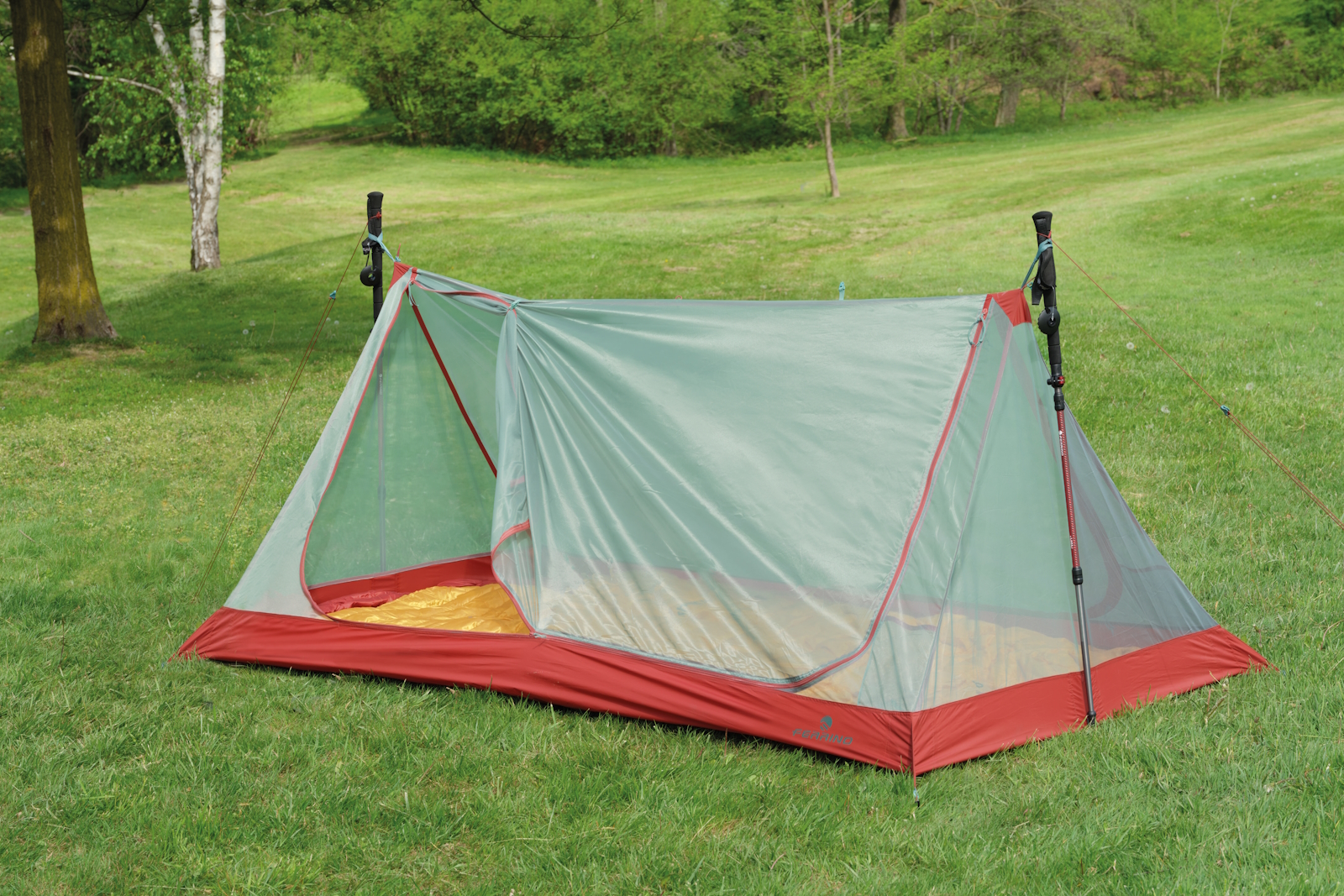 - Палатка устанавливается с помощью трекинговых палок (не входящих в комплект), которые должны быть высотой не менее 110 см.