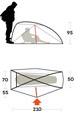 - Основные преимущества палатки - минимальная площадь, вес конструкции и время установки. Предварительно изогнутые дуги и распорка позволяют добиться достаточного внутреннего объема и придают прочность конструкции.
