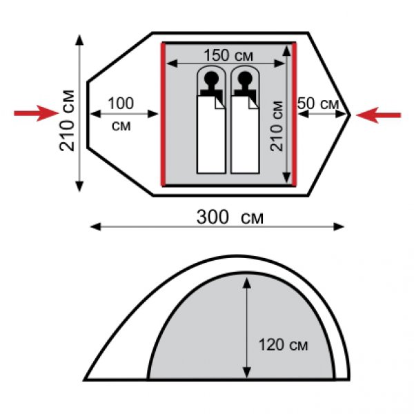 - Материал внутренней палатки: 100% дышащий полиэстер