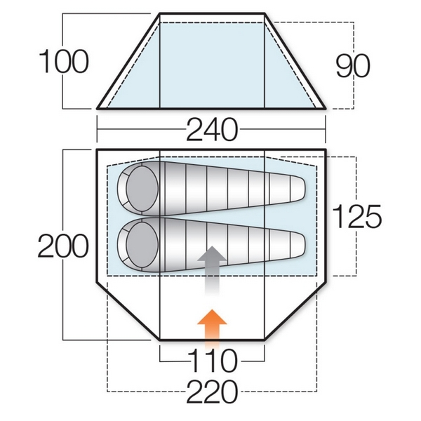 - Внешняя палатка (ДхШхВ), мм: 2400 х 2000 х 1000