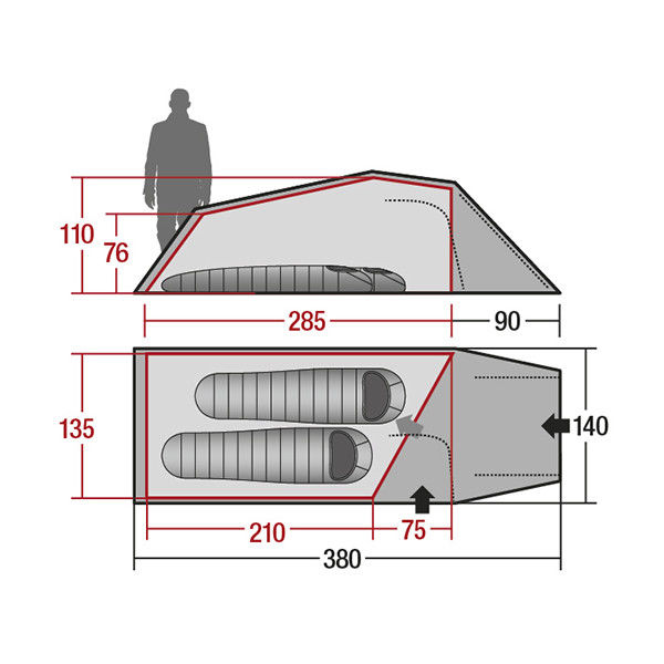 - Внешняя палатка (ДхШхВ), мм: 3800 х 1400 х 1100