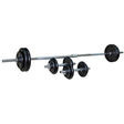 - Вес дисков: 1.25 кг, 2.5 кг, 5 кг (5 кг ― 4 шт; 2,5 кг ― 6 шт; 1,25 кг ― 4 шт)