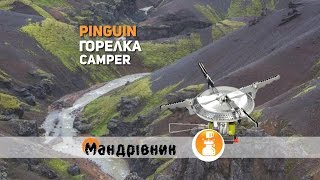 Газовая горелка Pinguin Camper - может выдержать большие весовые нагрузки. Благодаря очень широкому рассекателю пламени пища готовится равномерно. Изготовлена из нержавеющей стали и алюминия.