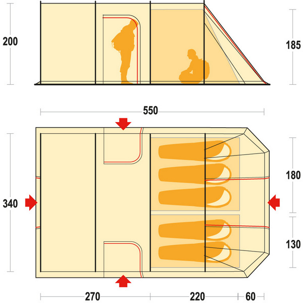 - Внешняя палатка (ДхШхВ), мм: 5500 х 3400 х 2000