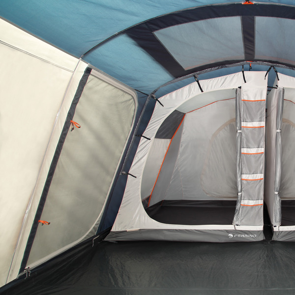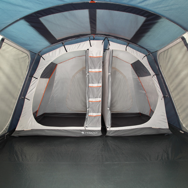 Палатка Emerald 5 относится к премиальному сегменту семейных палаток Ferrino и является полноразмерной кемпинговой палаткой, обеспечивающей высокий уровень комфорта, надежности и функциональности. Едва ли можно найти другую подобную палатку, которая бы имела 4 отдельных входа. Дугам каркаса предана специальная изогнутая форма, благодаря чему достигается больший полезный объем и высота палатки, большинство пользователей могут свободно перемещаться в ней в полный рост. Emerald 5 White/Gray имеет вместительный тамбур, где можно легко обустроить походную кухню со столовой и зоной отдыха одновременно, либо расположить до пяти дополнительных спальных мест. Спальная зона состоит и двух отдельных палаток. Такое решение обеспечивает более высокий уровень приватности, а также позволяет при ненадобности убрать одну из внутренних палаток, увеличив свободное пространство под тентом. Пара боковых, большое верхнее вентиляционное окно и наличие москитной сетки всех дверей внутренней палатки и внешнего тента гарантируют комфортный микроклимат и отсутствие насекомых в палатке. Учитывая двухслойную конструкцию, двухточечную систему штормовых оттяжек и наличие герметичного пола по всему периметру, степень водозащиты вполне достаточна, чтоб, при правильной установке, сохранить палатку внутри сухой во время дождя. Для производства данной модели использован более прочный материал тента и стальные дуги, определяющие надежность палатки и ее назначение для длительного кемпинга, в том числе и в неблагоприятных погодных условиях. А такие мелочи как опускаемый борт порога, проемы для прокладки кабелей, органайзер для необходимых вещей сделают длительное проживание в палатке более комфортным.