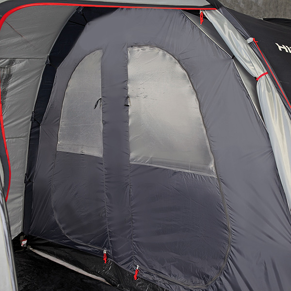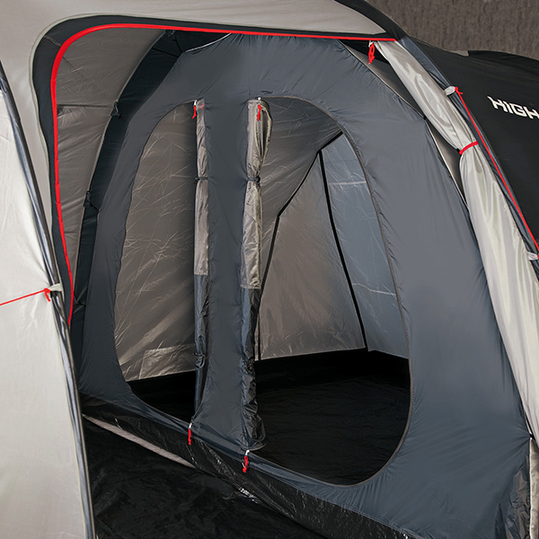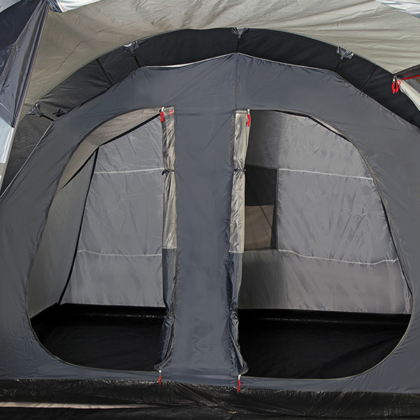 Кемпинговая 5-х местная палатка, с разделяемым спальным отсеком. Большой тамбур на дополнительной дуге с полом, наличие двух входов, позволят использовать её как в базовом лагере, так и для семейного отдыха на природе. Москитная сетка на входе в спальное отделение, проклеенные швы тента, вентиляционный клапан.