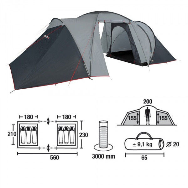 - Вес палатки: 9.1 кг
