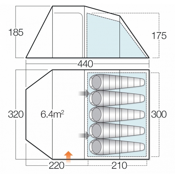 Легкая четырехместная палатка Vango Mambo 500 - это вместительная палатка, имеющая при этом сравнительно малый вес и компактные размеры в упакованном виде. Vango Mambo 500 с одной стороны предоставляет уровень комфорта кемпинговой палатки, а с другой стороны имеет запатентованную систему стабилизации каркаса TBS II и достаточную степень водонепроницаемости, благодаря чему вполне пригодна для походов средней сложности в неблагоприятных погодных условиях и как палатка в базовом лагере.Тамбур площадью 6.4 м2 имеет достаточно места не только для размещения багажа, но и для организации кухни и зоны отдыха. Туннельная конструкция предоставляет наибольший полезный объем по отношению к весу палатки. Возможность установки одновременно внешнего тента с закрепленной в нем внутренней палаткой гарантирует, что даже при установке в дождь внутренняя палатка останется сухой. Модель соответствует основным требованиям согласно стандарта Европейского союза EN5912.