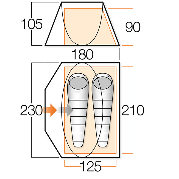 - Внутренняя палатка (ДхШхВ), мм: 1250 х 2100 х 900