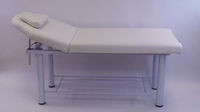 - ножки кушетки металлические, покрашены в белый цвет, под кушеткой имеется полочка для хранения различных аксессуаров.