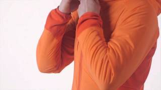 • Материалы: [Hood, chest and arms] Schoeller® stretch-woven nylon with NanoSphere® Technology (80 g/m2, 93% nylon, 7% elastane); [Insulation] PrimaLoft® Silver Hi-Loft (80 g/m2); [Underarms, back and cuffs] Blended merino wool (300 g/m2, 100% nylon face, 100% merino wool back)