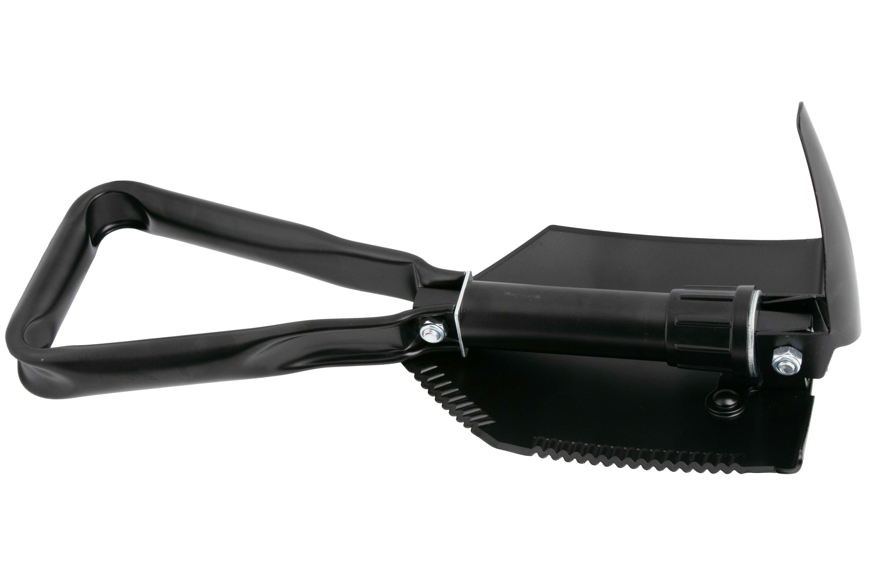 - Незаменимое снаряжение для природы. Этот крепкий инструмент выполняет все необходимые работы по рытью — перемещение грунта, уборка снега или выемка автомобиля из грязи. В то же время, зубчатое лезвие позволяет расчищать кустарник и рубить мелкие ветки деревьев для уборки места лагеря. Используйте пик для разбивки твердого грунта.