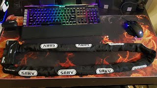 Массивная цепь длиной 140 см обеспечивает максимальную защиту – 20 из 20 по шкале ABUS Level System. Изготовленная из специальной закаленной стали толщиной 12 мм, цепь в сечении имеет форму шестиугольника, что гарантирует лучшее сопротивление при перекусывании или пилении по сравнению с обычной "круглой" цепью. Чтобы избежать повреждений лако-красочного покрытия мотоцикла, цепь покрыта защитным чехлом из прочной ткани.