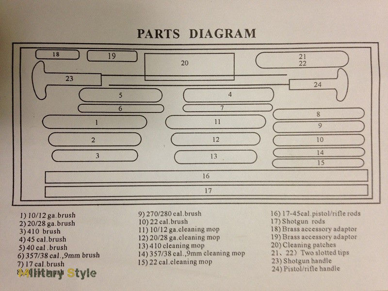 - Составные шомпола для чистки нарезного оружия (ружей и пистолетов) для калибров от .17 до .45
