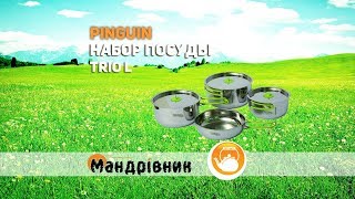Набор стальной посуды Pinguin Duo S 16/14 прекрасно подходит для путешествий небольшой компанией на 2-3 человека. Набор изготовлен из нержавеющей стали, содержит две кастрюли объемом 1,0 л и 1.5 л с крышками и одну сковородку. Особенностью кастрюль и сковородки является то, что они имеют складные ручки, покрытые мягким, термоизоляционным силиконовым материалом, предотвращающим их нагреванию. В комплект также входит нейлоновая сумка, в которой удобно переносить набор, который компактно складывается в большую кастрюлю.