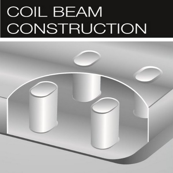 - Coil beam construction - балочная конструкция строения каркаса, при которой своего рода поперечные балки соединяют верхнюю и нижнюю поверхности матраса, обеспечивает прочность, долговечность и удобство использования изделия.