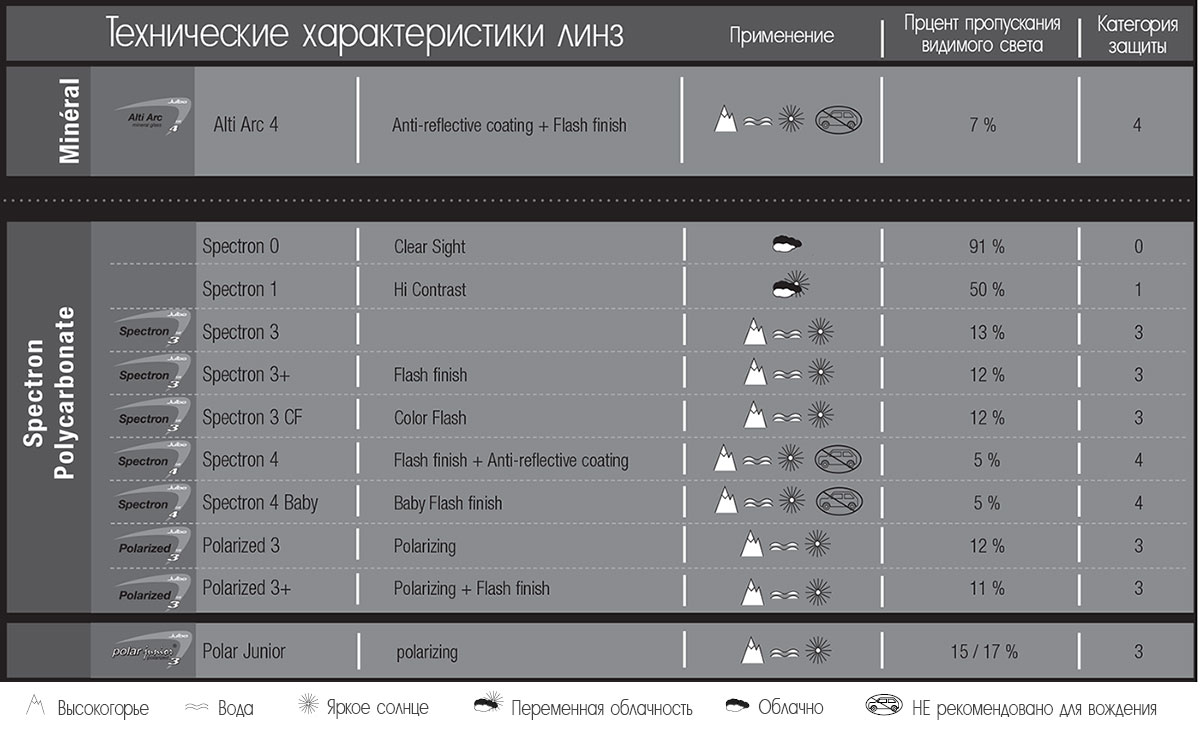 Категории и степень защиты линз: 3