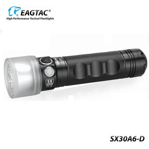 Фонарь Eagletac SX30A6 Diffuser XP-L V3 (1405 Lm) имеет основную группу режимов, а также скрытую группу, режим дезориентирующего стробоскопа, режим энергосбережения и режим индикации заряда элементов питания. Каждый из режимов доступен при направленном, рассеянном и комбинированном свете. Управление фонарём осуществляется при помощи торцевой и двух боковых кнопок. Включение фонаря в турбо-режиме и выключение питания производится глубоким нажатием на боковую кнопку чёрного цвета или торцевую кнопку. При нажатии и удержании торцевой или черной боковой кнопок, фонарь включается в турбо-режиме и будет светить до того момента, пока кнопка удерживается. После отпускания кнопки фонарь выключится. Чтобы включить фонарь в минимальном режиме - нажмите боковую белую кнопку.