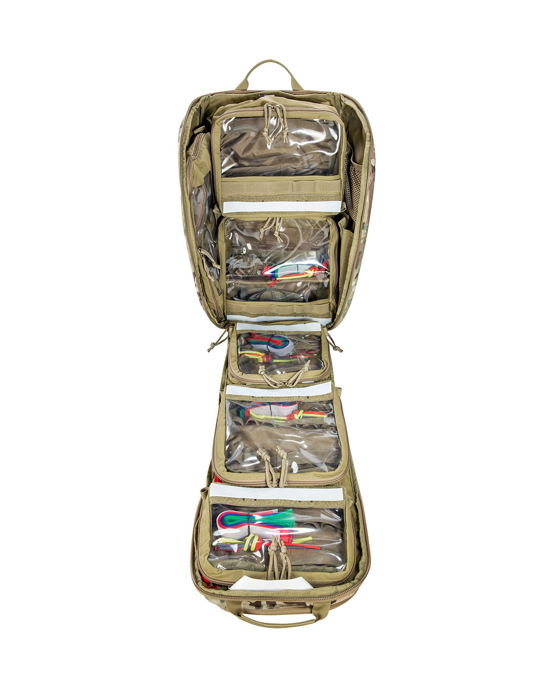 Модульный медицинский рюкзак объемом 38 литров, с двумя передними карманами и большим отделением на крышке. Полностью расширяемое основное отделение с 6 прозрачными карманами на липучках. Мягкая спинка для переноски и съемный поясной ремень шириной 38 мм.