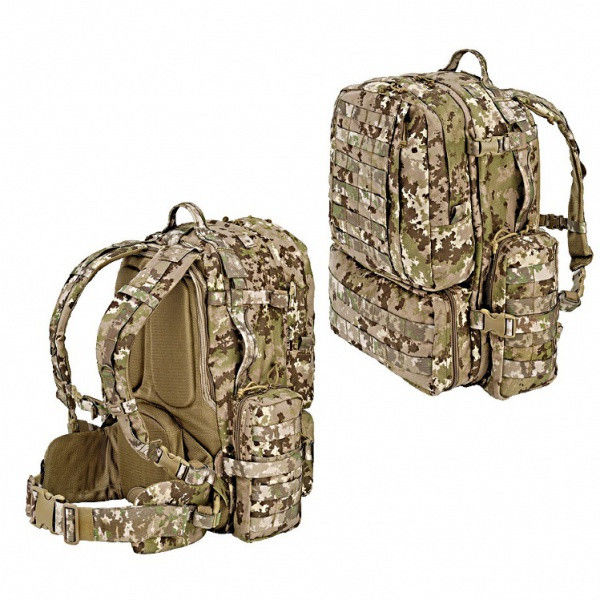Система подвеса рюкзака способствует поддержанию правильного положения позвоночника при ходьбе и позволит переносить грузы на большие расстояния обеспечив при этом правильное перераспределение веса. Рюкзак обладает полезным объёмом в 60 литров, оборудован системой Molle по стандартам NATO (25х35 мм), адаптирован под питьевую систему а также имеет множество отделов и карманов для мелких вещей.