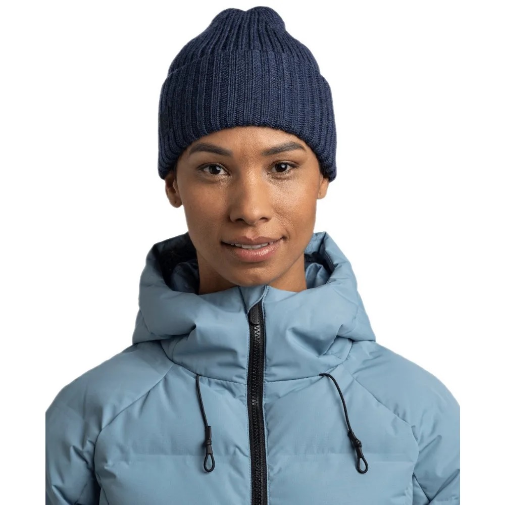 Несмотря на низкий углеродный след, эта трендовая шапка Buff Knitted Beanie Erviny с подворотом также изготовлена из 100% шерсти мериноса без жестокости.