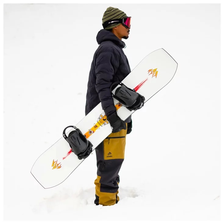- Oversized recycled edges – все сноуборды Jones оснащены более толстыми кантами из переработанного металла, что увеличивает их прочность и срок службы.