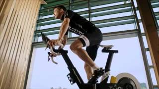 Имитация езды по улице на официальном тренировочном велотренажере Le Tour De France.