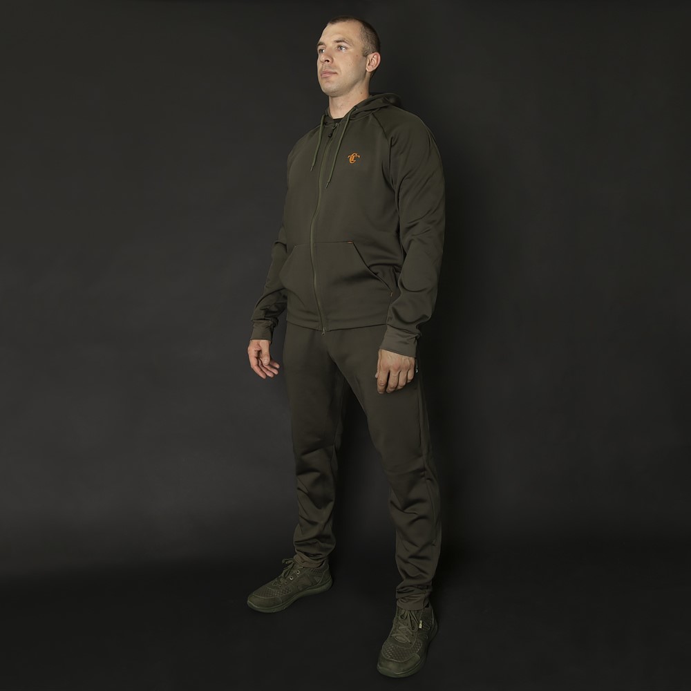 Кофта с капюшоном, капюшон на утяжке. Два накладных кармана с вентиляционной сеткой Cool Mesh. Центральная застежка-молния с двумя «бегунками», сверху / снизу добавляют удобства в использовании. Штаны имеют два передних врезных кармана.