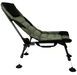 Кресло выполнено в строгом темно-зеленом цвете с подголовником черного цвета, внутри мягкий наполнитель. Для большей устойчивости предусмотрены пятаки на ножках - 9 см. Кресло можно использовать для отдыха на природе, на даче и во дворе. Компактно складывается для хранения и транспортировки. Комплектуется чехлом.