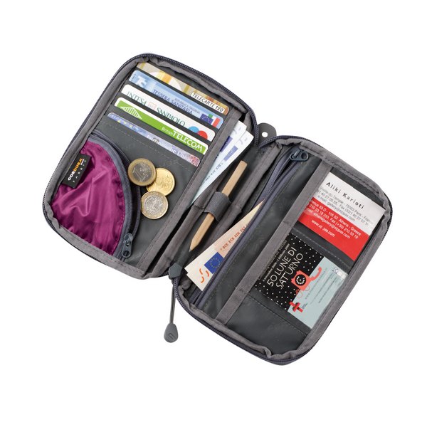 Сумка для документов Hartsfield Boysen Berry относится к линейке Ferrino Lite Line, объединяющей ультралегкие аксессуары для путешествий, выполненные из сертифицированного по стандарту Oeko-Tex материала Cordura® с водонепроницаемым силиконовым покрытием. В сумке можно разместить паспорт, права, дисконтные и банковские пластиковые карты, проездные билеты, шариковую ручку, банкноты и монеты. Все основное, что нужно туристу для путешествия по Украине или за рубежом можно разместить в сумка для документов Ferrino Hartsfield Boysen Berry. Боковые поверхности имеют полужесткий каркас, благодаря чему документы не будут смяты. Специально вшитая стропа из материала Hypalon® с отверстием позволяет пристегнуть сумку для документов карабином и не бояться за ее сохранность.