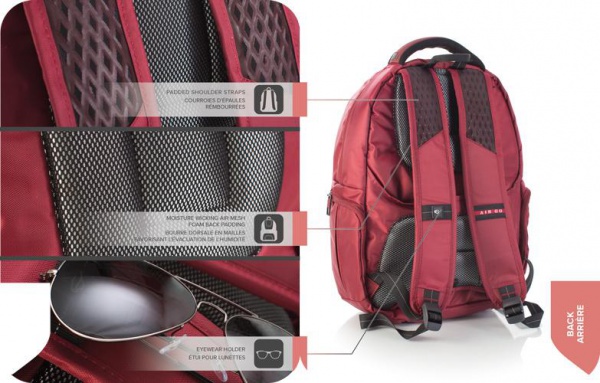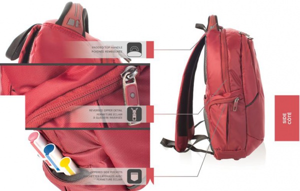 Для удобства транспортировки рюкзака, конструкцией TechPac предусмотрена возможность переноски самого рюкзака непосредственно на выдвижной телескопической ручке чемодана или сумки. Для этого, в спинке рюкзака расположен специальный проем, продев через который ручку чемодана или сумки, рюкзак надежно будет зафиксирован.