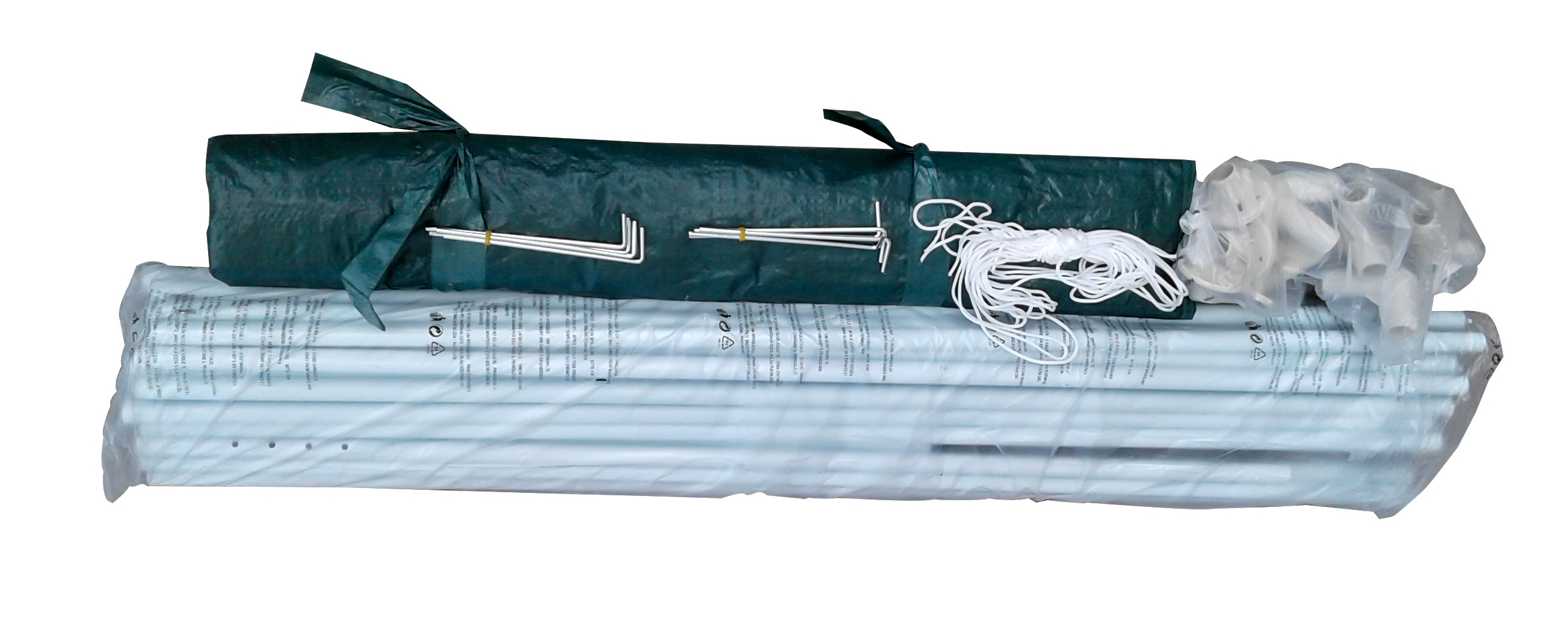 Установка и сборка павильона не занимает много времени и не требует слишком больших усилий. Лёгкая конструкция ножками надёжно крепится в землю и для дополнительной устойчивости растягивается верёвками. Углы проклеены, что добавляет надёжности конструкции.