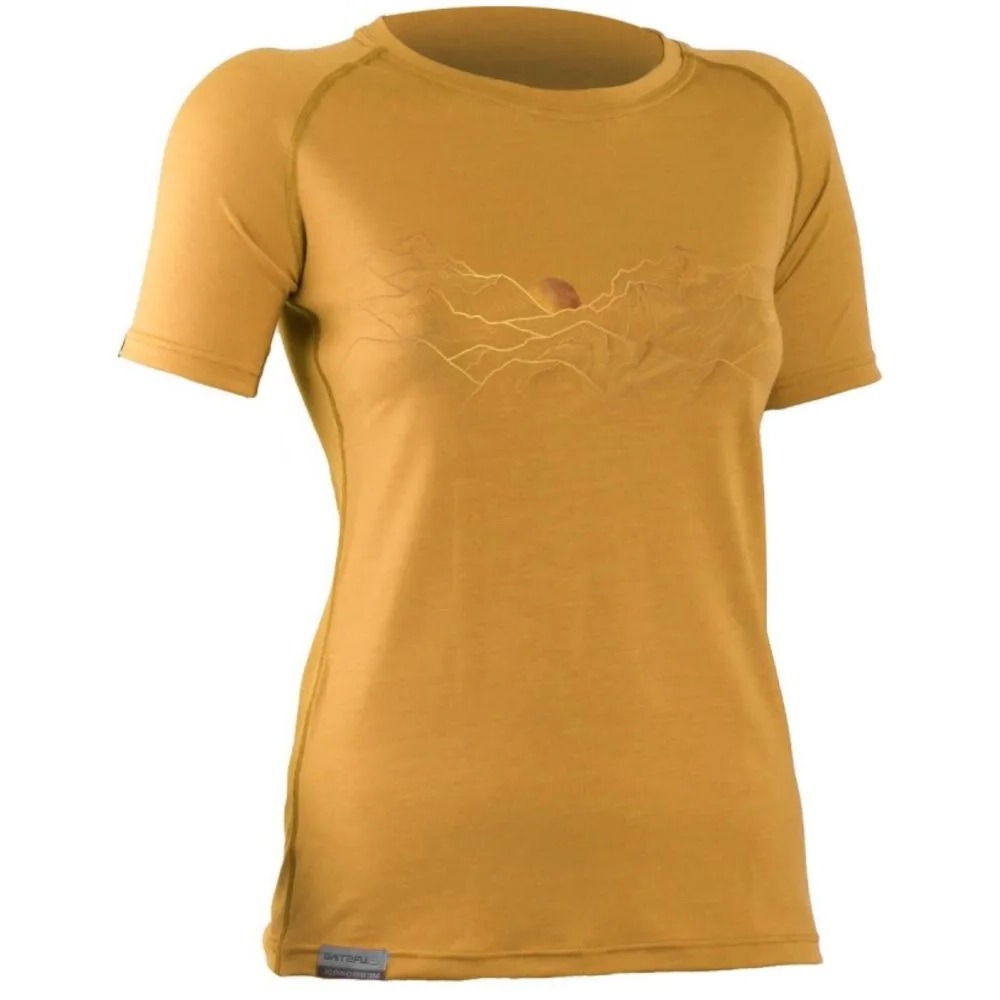 Женская шерстяная футболка LAVY с принтом, однослойный трикотаж. Плоские швы и рукав реглан. Подходит в качестве первого слоя летом или зимой, независимо от того, надеваете ли вы ее для походов или повседневных занятий. Эта футболка изготовлена ​​из высококачественной австралийской мериносовой шерсти, которая сохраняет кожу сухой, обладает выдающимися теплоизоляционными и влагоотводящими свойствами.
