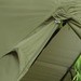 - По всему периметру палатка оснащена снегозащитной (ветрозащитной) юбкой, которая не только защищает от задувания снега и пыли под тент, но и в значительной степени улучшает устойчивость палатки к ветровым нагрузкам, упрощает установку в местах со сложным рельефом и увеличивает теплоизоляцию. Для улучшения вентиляции снегозащитная юбка может быть поднята с любой стороны.