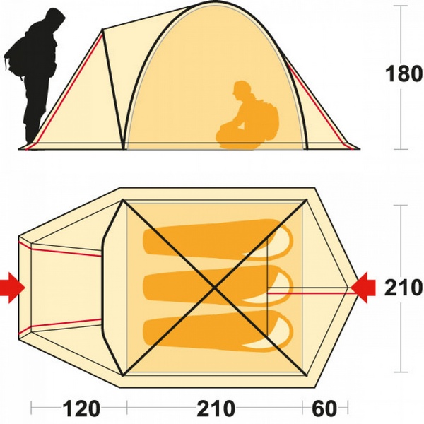 - Внешняя палатка (ДхШхВ), мм: 3900 х 2100 х 1800