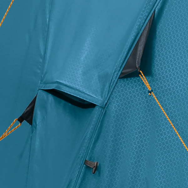 - Конструкцией предусмотрено четыре вентиляционных окна, расположенных по бокам от входов в палатку на разной высоте, что способствует естественному проветриванию. Система вентиляции Camera Air создает большую воздушную камеру между внешним тентом и внутренней палаткой, которая содействует свободной циркуляции воздуха вокруг внутренней палатки. С одной стороны это избавляет от появления конденсата внутри, а с другой стороны воздух является лучшей теплоизоляционной прослойкой.