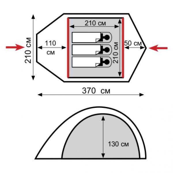 - Материал внутренней палатки: 100% дышащий полиэстер