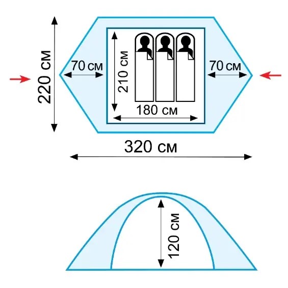 - Тент: 100% Полиэстер 75D/190T RipStop 6000 мм в. ст.