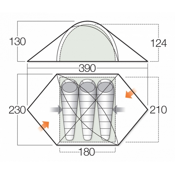 - Внешняя палатка (ДхШхВ), мм: 3900 х 2300 х 1300