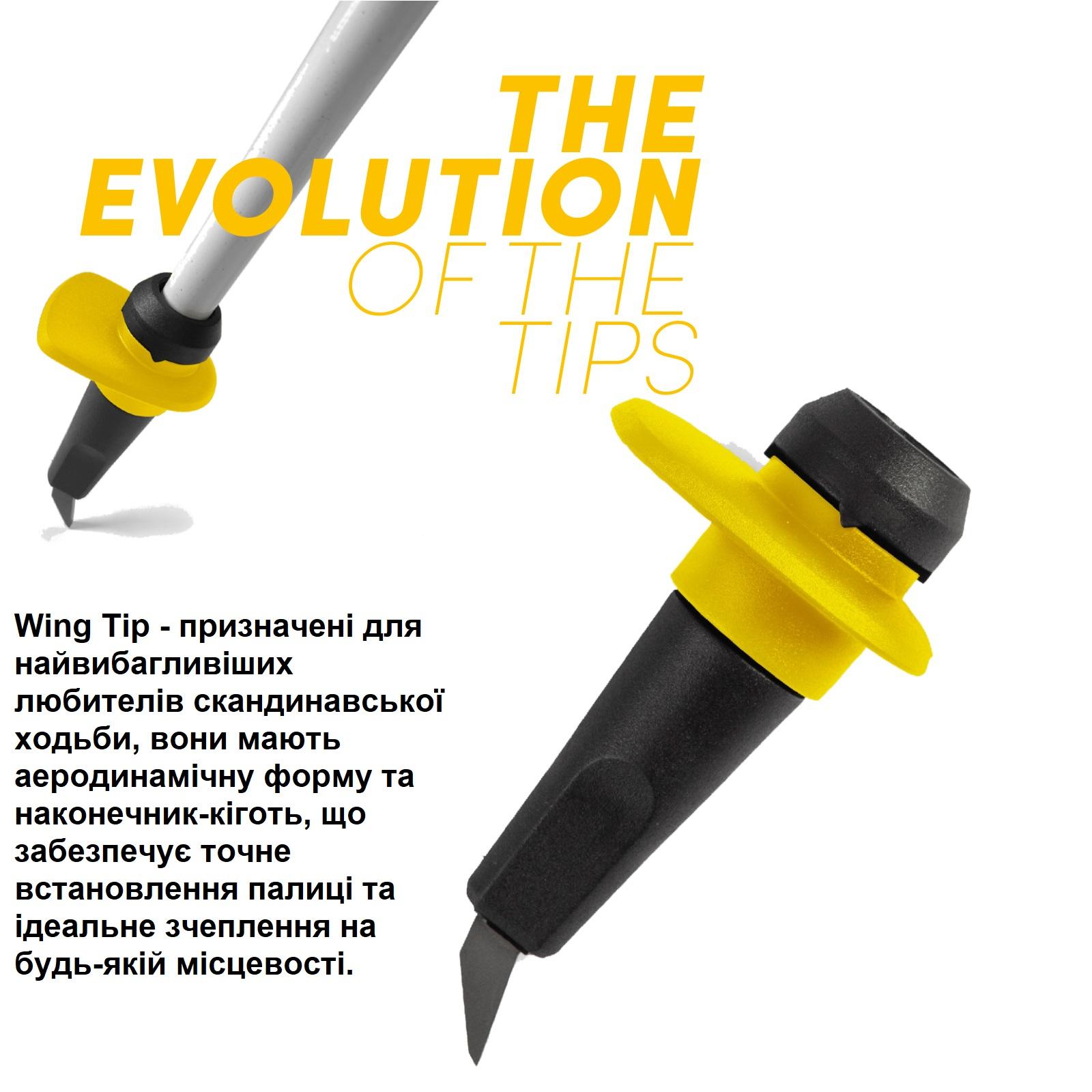 Wing Tip - загнутый и заостренный наконечник специальной формы обеспечивает отличное сцепление с грунтом и искусственными покрытиями и способствует скоростной ходьбе.