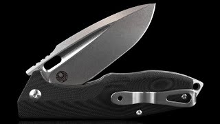 Нож открывается при помощи плавника, также можно использовать желоб на клинке. Клинок движется быстро и плавно благодаря шарикоподшипнику и фиксируется замком Liner Lock.