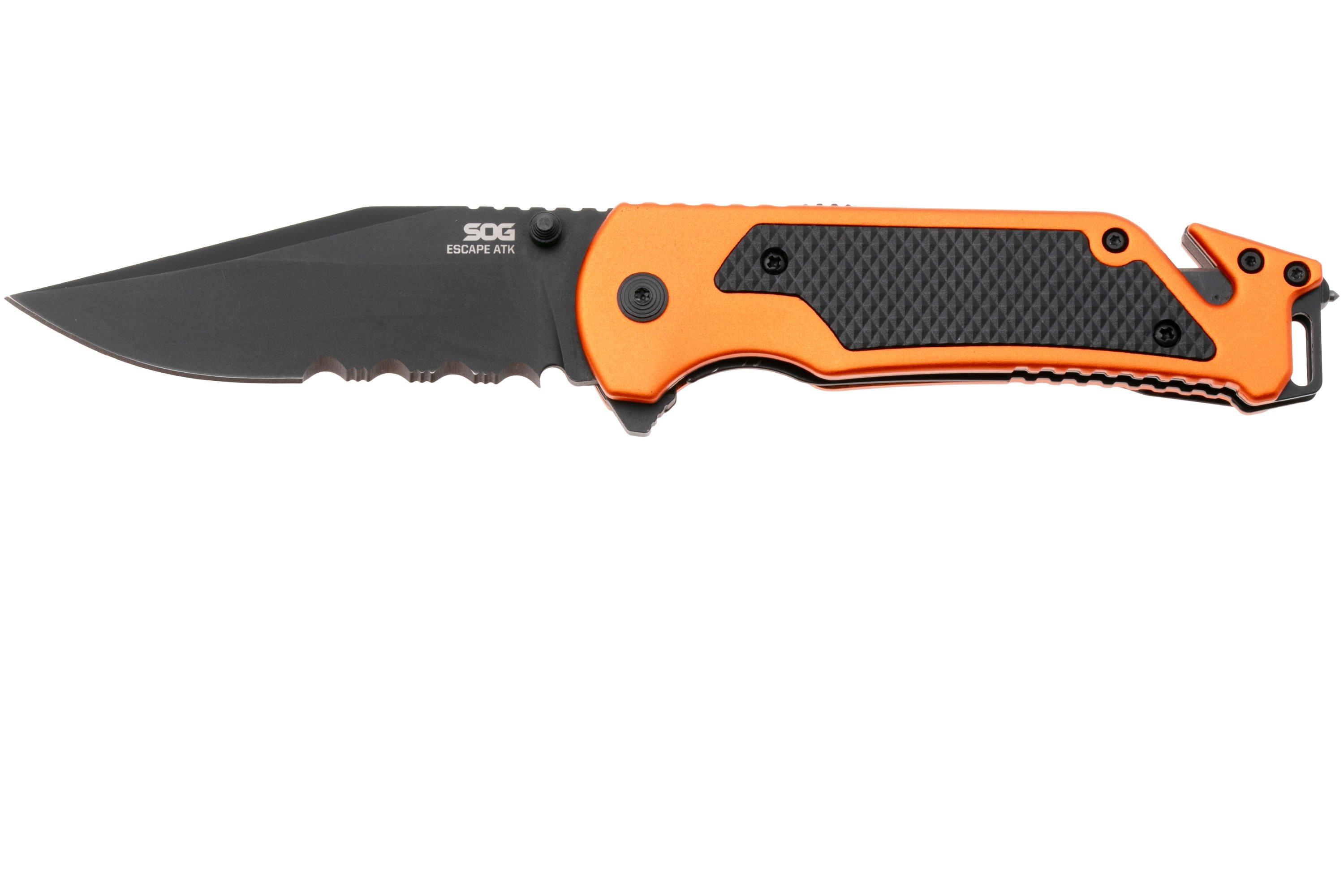 Нож SOG Escape ATK 2.0 - обновленная версия оригинального бюджетного складного ножа Escape, созданного для сотрудников правоохранительных органов, спасателей и экстренных служб. Клинок из нержавеющей стали AUS-8 с ассистированным открыванием раскрывается с четким щелчком во время работы одной рукой. Используйте встроенный стеклобойник и резак ремней в ситуациях – от спасательных операций до решения ежедневных задач. Созданный на длинную службу, Escape 2.0 имеет крепкую рукоятку из авиационной стали и проверен механизм ассистированного открывания с лайнер-локом.