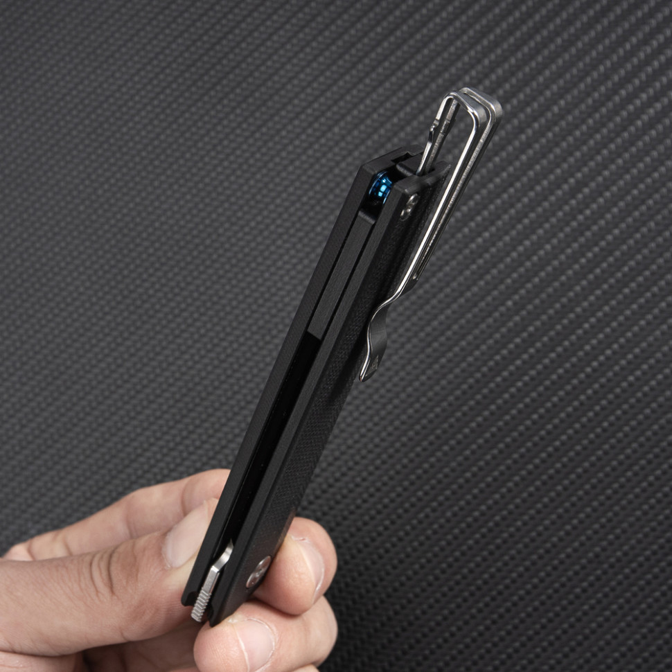Благодаря продуманной эргономике рукояти нож удобно лежит в руке, а текстурированная поверхность обеспечивает надежный хват. В качестве фиксатора используется замок Liner Lock, обеспечивающий надежное удержание клинка в открытом положении. Нож открывается мгновенным нажатием на скрытый флипер (Invisible Flipper). В осевом узле используются стальные подшипники. Фирменная Ambi-клипса Tip-Up позволяет туго зафиксировать нож и полностью спрятать его в кармане. Зажим можно переставлять на любую удобную для вас сторону рукоятки.