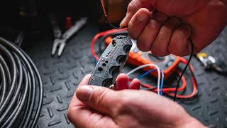 - Схематические рукоятки, опорный зажим высокого напряжения, изоляционная заколка для большого пальца и лезвие с выгравированным разъемом — это признаки, которые делают этот нож очень уникальным с фиксатором.
