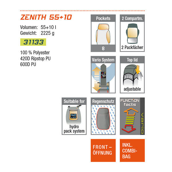 - Системы VARIO system позволяет оперативно настроить максимально комфортную посадку рюкзака на спине человека с учетом анатомических особенностей человека